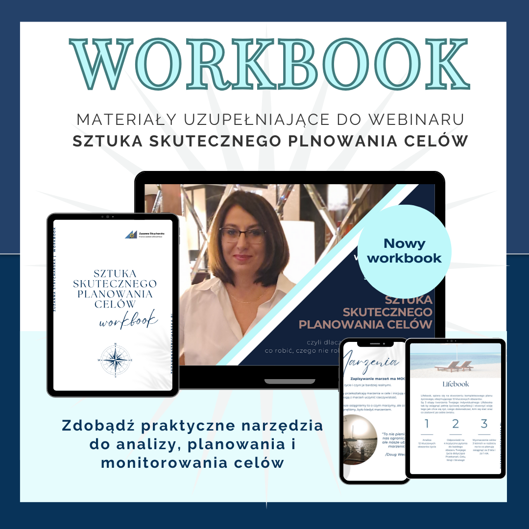 Odkryj potencjał swojego planowania z Workbookiem – idealnym uzupełnieniem Webinaru “Sztuka skutecznego planowania celów”. To starannie wyselekcjonowane narzędzie, pełne praktycznych ćwiczeń, technik motywacyjnych i gotowych narzędzi, które pomogą Ci przełożyć teoretyczną wiedzę na konkretne działania.